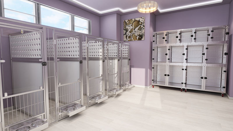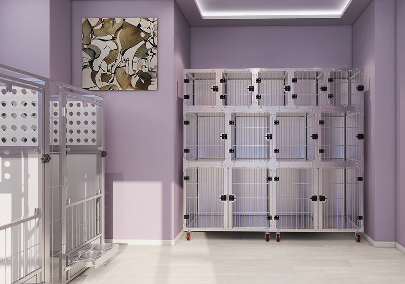 Kinakatawan ng Lohas Series ang aming pinakabagong walk-in kennel system. Ang lahat ng bahagi sa loob ng Serye ng Multi-purpose Animal Boarding at Quarantine Cage ay maaaring i-customize upang umangkop sa iyong mga kinakailangan at available na espasyo. Ang mga front door, side panel at accessories ay nag-aalok ng maraming opsyon sa pagsasaayos at available sa iba't ibang materyales. Ang iyong pangarap na kulungan ng aso ay nagiging isang katotohanan dito! Ang isang flexible na kumbinasyon ng hindi kinakalawang na asero, high-density na HDPE, tempered glass at/o powder-coated na bakal ay nagbibigay ng malawak na mga opsyon sa materyal. Maraming user-friendly na feature tulad ng umiikot na feeding door, one-touch magnetic latches at walang kahirap-hirap na pinaandar na lift-up door ang maaaring isama sa system na ito. Tinatanggap namin ang lahat ng mga katanungan, kinakailangan at pasadyang mga order. Ang aming koponan ng mga inhinyero at taga-disenyo ay malulugod na makagawa ng mga 2D/3D na visualization para sa iyong sanggunian.